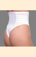 Корсетные трусы-стринги с завышенной талией очень сильной степени коррекции. Особые швы, выполненные на талии, обеспечивают ее уменьшение, одновременно подтягивая живот. Не скручиваются и комфортны при использовании. Ластовица - 100% хлопок.