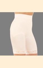 Корсетные панталоны с завышенной талией средней степени коррекции из шелковистого материала. Дополнительная невидимая вставка на фронтальной панели усиливает корректирующий эффект области живота. Широкая лента подчеркивает талию. Нижний край выполнен из кружева с силиконовой лентой, что позволяет изделию плотно зафиксироваться на бедрах и не вызывать дискомфорта при ходьбе. Ластовица – 100% хлопок.