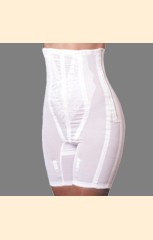 Корсетные панталоны с завышенной талией очень сильной степени коррекции. Уникальные панталоны по своему крою и составу: состоят из ткани разной плотности, что позволяет очень «жестко» формировать фигуру, крой предусматривает все нюансы женской фигуры – комфортная выпуклость на ягодицах, плотная вставка по бокам и на передней панели. Специальные косточки позволяют зафиксировать линию талии и чувствовать себя очень комфортно, носить одежду, подчеркивающую стройность фигуры. Имеется молния и крючки для удобства надевания и скрытые 4 крепежа для подвязок для чулок. Ластовица – 100% хлопок.
