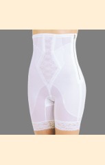 Корсетные панталоны с завышенной талией сильной степени коррекции из шелковистого материала. Специальные косточки позволяют зафиксировать линию талии и чувствовать себя очень комфортно, носить одежду, подчеркивающую стройность фигуры. Застежка-молния и скрытые крючки позволяют комфортно одевать и снимать панталоны. Эксклюзивная вставка на фронтальной панели и особый крой позволяют уменьшить объемы на 1-2 размера. Нижний край выполнен из кружева с силиконовой лентой, что позволяет изделию плотно зафиксироваться на бедрах и не вызывать дискомфорта при ходьбе. Есть скрытые 4 крепежа для подвязок для чулок. Ластовица – 100% хлопок.