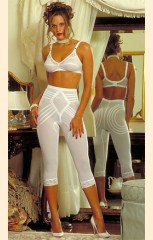 Корсетные штаны-капри сильной степени коррекции со специальной вставкой на животе и особым кроем из круговых швов, обеспечивающих уникальную коррекцию бедер и талии. Нижний край изделия оторочен эластичным кружевом с силиконовой лентой. Длина – до середины голени. Ластовица - 100% хлопок.