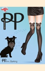 Фантазийные колготки с эффектом ботфортов. Верх изделия украшен рисунком в виде мордочки собаки, а сзади-рисунком хвостика собаки.Колготки смешанной плотности: нижняя часть плотностью 40 дэн, верхняя часть плотностью 20 дэн.