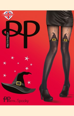 Колготки-ботфорты с рисунком "шляпа-призрак" (на тонкой верхней части: маленькие серебристые звездочки"